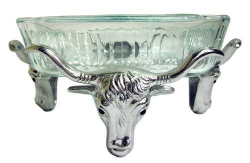 Great for entertaining this Arthur Court longhorn casserole ensemble features a sturdy footed base with a longhorn cattle head design on all four sides The stand is made of Arthur Courts signature aluminum alloy and the removable square glass Pyrex baking dish allows you to bring a bubbling cass