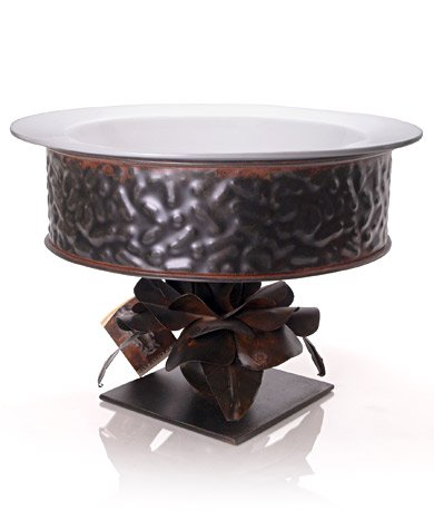 With a steady strong iron base and featuring such stylistic elements as a delicate-looking flower whose petals encircle the base and a textured hand-hammered design that has been oxidized to a fine patina Jan Barboglios Guadalupe Rose Casserole is a gorgeous Old World MexicoSouthwestern style